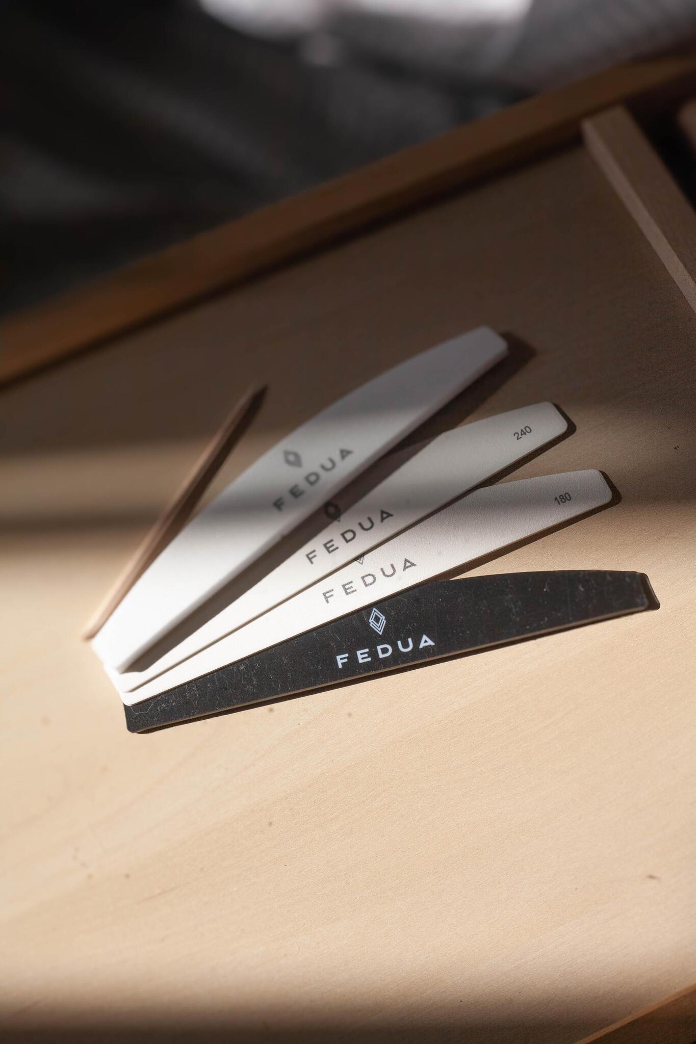 Пластиковая основа; пилка для ногтей 240; пилка для ногтей 180; выравнивающая